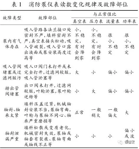 離心式消防泵在運(yùn)行過程中,通過監(jiān)測真空表、壓力表、流量表、功率表讀數(shù)特征可快速判斷故障類型及故障部位(公眾號(hào):泵管家),簡捷方便地診斷消防泵的故障。