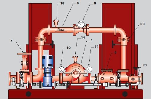 2.消防泵的吸入口和排出口是水平的,簡(jiǎn)化了管道的連接。