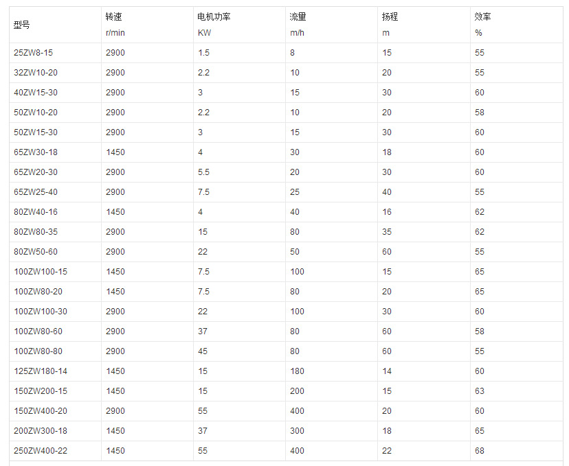 3、ZW自吸排污泵自吸性能好:自吸高度比一般自吸泵高1米,且自吸時間短。