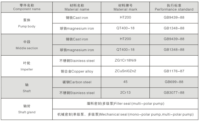 3、軸封采用機(jī)械密封或機(jī)械密封的組合,采用優(yōu)質(zhì)的質(zhì)合金密封環(huán),增強(qiáng)了密封的耐磨性能有效地延長(zhǎng)壽命。